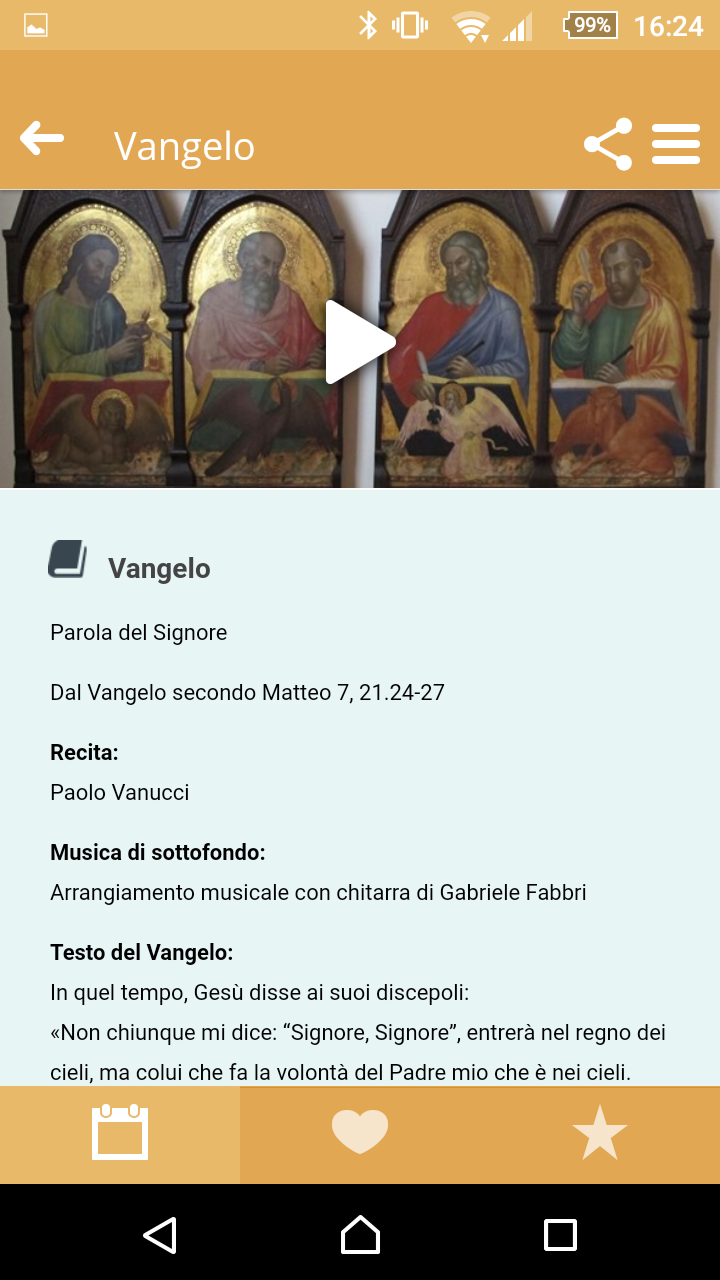 Una app che offre riproduzione in audio della Liturgia delle ore, del vangelo del giorno, dei salmi, di canti meditativi e delle preghiere quotidiane con semplici didascalie introduttive.
