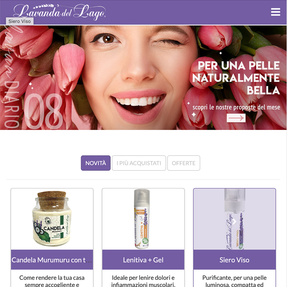 Realizzazione sito E-commerce per la vendita di prodotti alla lavanda dove vengono presentati i punti vendita e gli eventi dedicati ai loro prodotti.