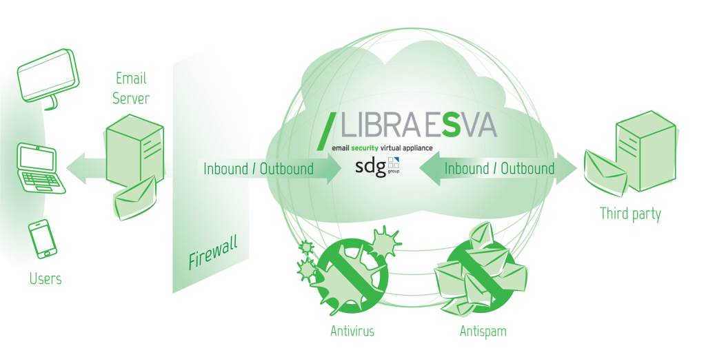 I filtri Libra Esva (Email Security Virtual Appliance) includono un doppio antivirus (ClamAV e BitDefender) e sono in grado di effettuare un'attenta analisi del messaggio alla ricerca di ulteriori elementi pericolosi quali Phishing, Trojan, Malware, Ransomware come cryptolocker. Inoltre, i filtri antispampermettono un'ampia personalizzazione (spam score, whitelist e blacklist, reportistica) a livello di dominio e di singola casella.